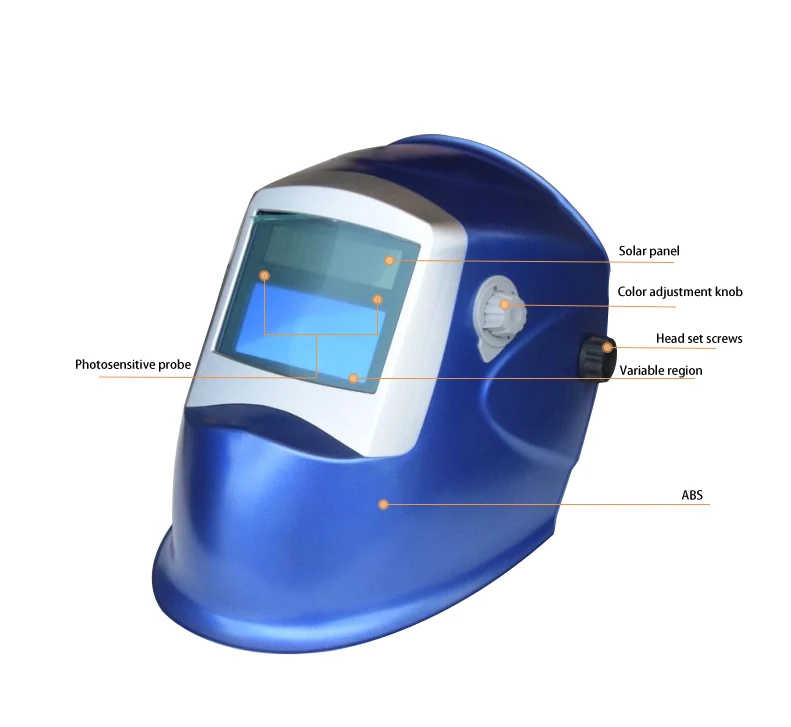 Korkealaatuinen automaattisesti himmenevä hitsauskypärä, musta aurinkoenergia, sininen hitsaussuoja |