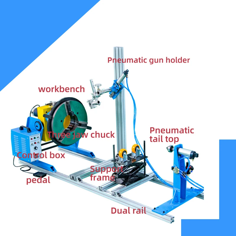 3.Robust performance: With a horizontal capacity of 15kgs, a vertical capacity of 7.5kgs, a rotation speed of 1-10r/min, and a tilt angle range of 0 to 90 degrees (adjustable via hand wheel), this positioner for rotary welding delivers robust performance.
