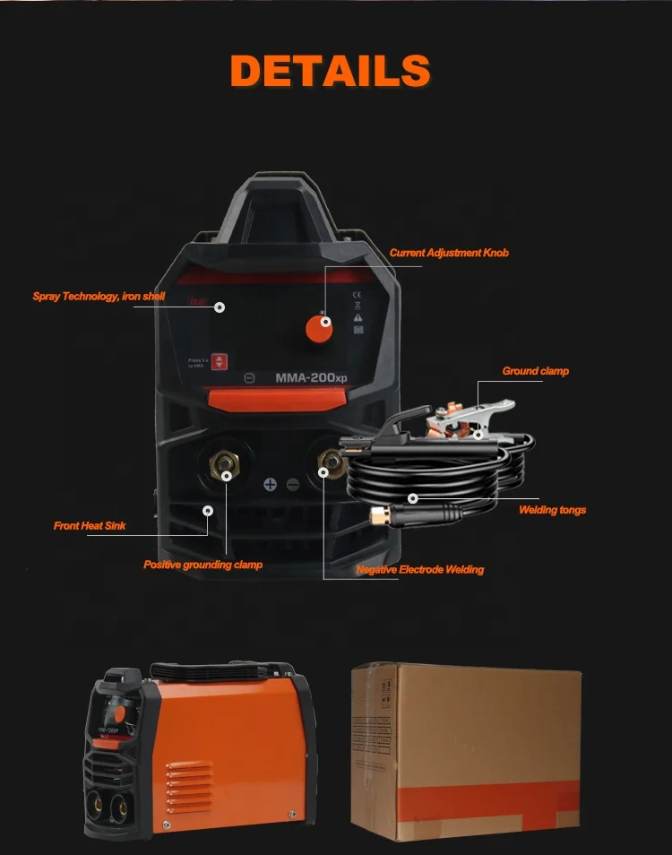 5.Accessories: electrode holder, earth clamp, brush/hammer, protective mask, carton box