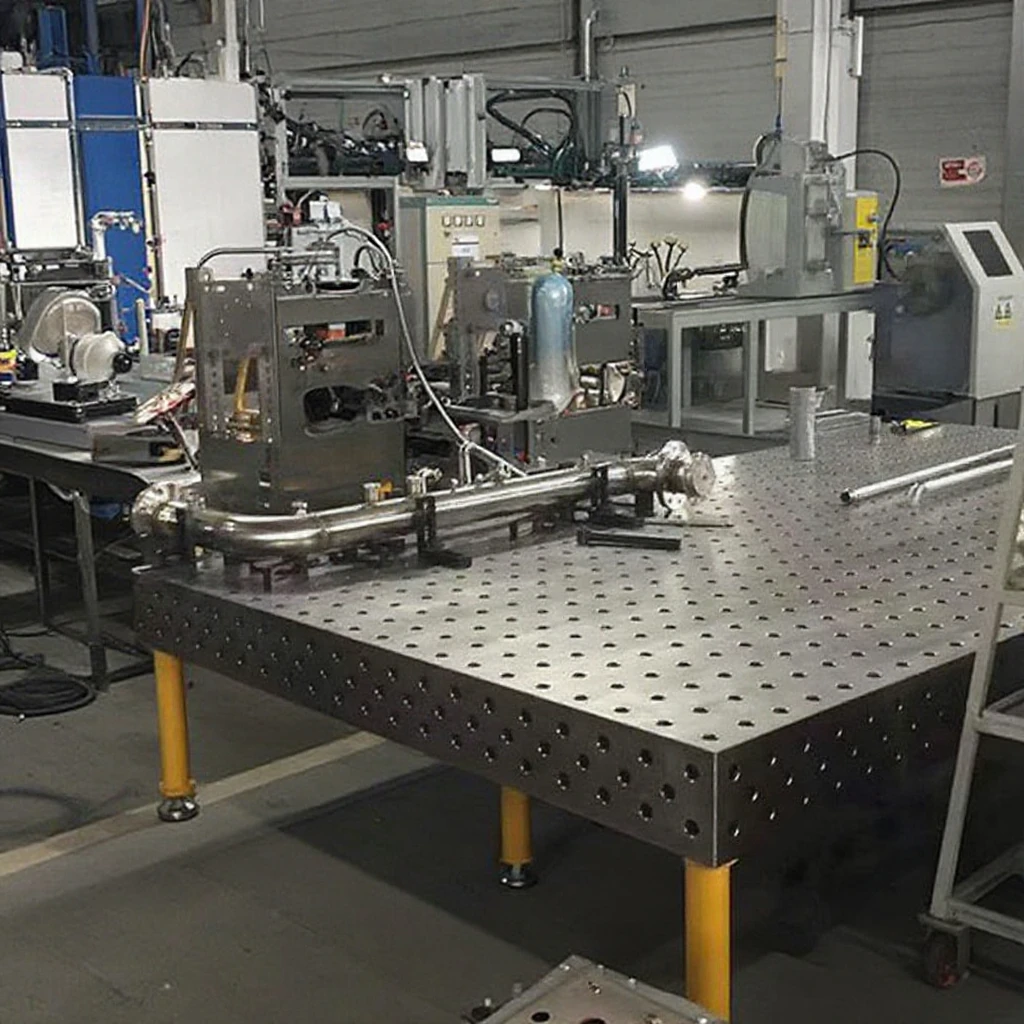 4. This assembly has a flatness level of 0.001mm/Meter and comes packaged in a wooden box, safeguarding the welding table during shipping. Moreover, it has CE and ISO certifications, assuring that the product meets international safety and quality standards