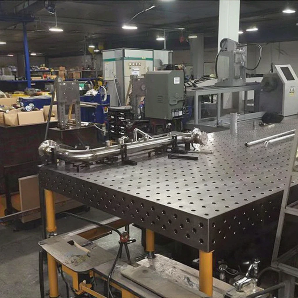 This table is crafted to support both 2D and 3D work. Flat layouts, jigging, and flange work take advantage of the generous flat surface, while the robust construction supports upright and complex Fixturing for three-dimensional assemblies. The broad surface provides plenty of space for clamps, jigs, fixtures, templates, and tooling, enabling efficient workflow and organized setups. Pre-drilled holes and slots are positioned for easy clamping and fixture mounting, giving you flexibility when creating custom jigs or repetitive production setups.
